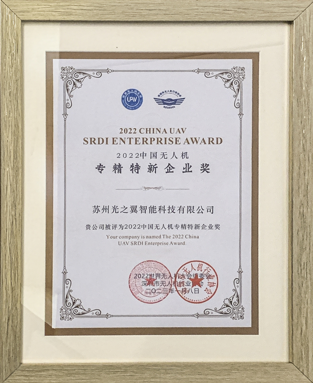 2022世界無(wú)人機(jī)大會(huì)中國(guó)無(wú)人機(jī)專精特新企業(yè)獎(jiǎng)